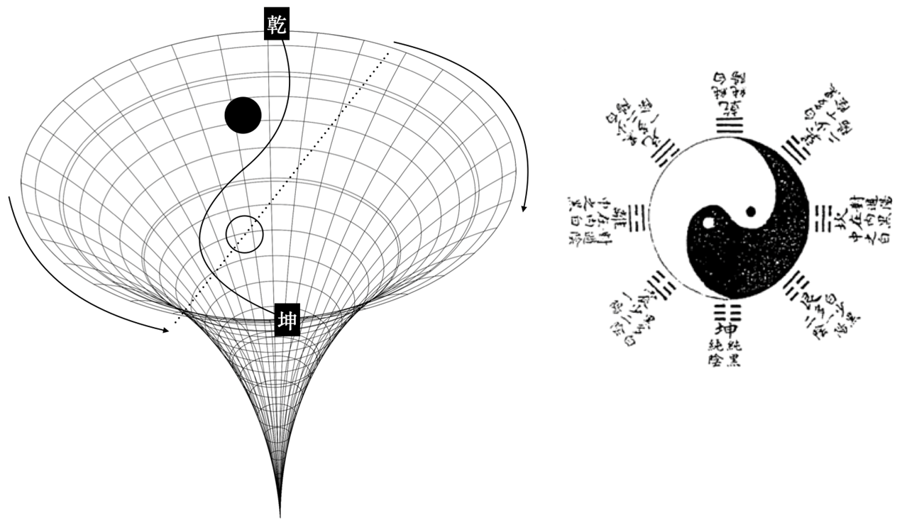 折疊(有、一):潛能凝聚,無分化狀態。像黑洞般內化一切可能性。